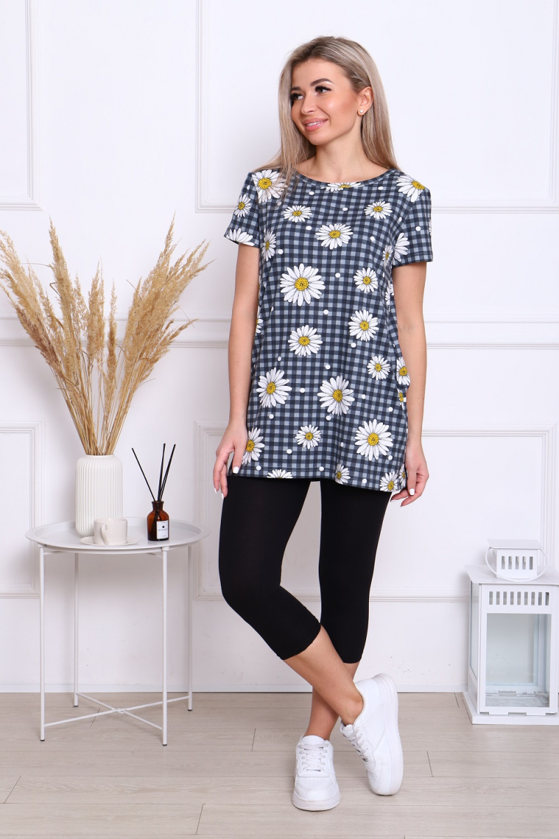 Костюм женский Дачник-3 "Ромашки", 100% хлопок - дышащий, комфортный: туника с коротким рукавом и карманами в боковых швах и легинсы.